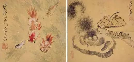 虚谷《金鱼松鼠图》